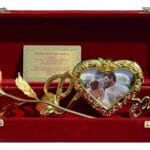 Surprise your loved one with this beautiful love rose gift box featuring a heart-shaped photo frame and elegant golden rose design. Perfect for couples, this romantic gift is ideal for anniversaries, birthdays, or special occasions. The premium red box adds a luxurious touch, making it a memorable keepsake. Customize with your favorite photo to create a unique and heartfelt gift.