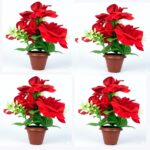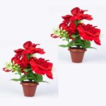 Artificial Red Rose Flower Plant with Pot for Home & Office Decor
