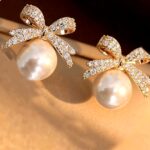 Elegant gold bow pearl stud earrings designed with sparkling crystal stones and a classic pearl drop. The stylish bow shape combined with a shiny pearl creates a luxurious and feminine look. Lightweight and comfortable for long wear, making them suitable for parties, weddings, festivals, and special occasions. This trendy fashion jewellery pairs beautifully with both traditional and western outfits and works as a perfect gifting option for women and girls who love elegant accessories.